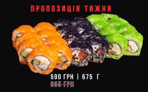 У нашому меню Ви можете знайти різноманітні, яскраві і улюблені багатьма страви японської або італійської кухні: суші, роли, піцу і багато іншого.