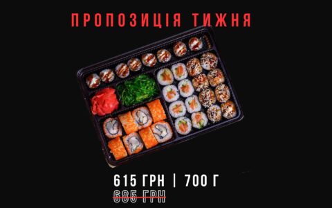 Філадельфія з авокадо, з огірком, з вугрем та огірком, Токіо з авокадо, Зелений, Червоний, Чорний дракон, Фітайгер