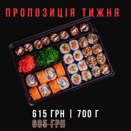 (Гострий рол Самурай, макі Асакі, макі Дзіро, макі з креветкою та сиром)